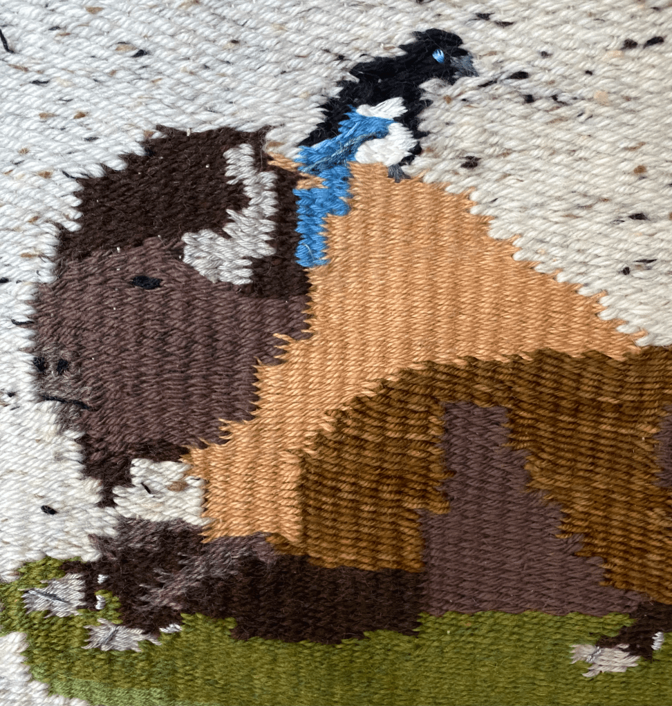 Hello all! I hope to update this little blurb monthly to provide a look into what I’ve been up in my art career. This month I am working on a series of tapestry weavings centered around the American bison. I started this project in October 2025, I’m picking it back up and I hope to finish it soon! I’ve finished one weaving and plan to create a total of 3-5 weavings, which will then be displayed hanging from some foraged branches. All of the yarn used is natural – I prefer natural yarns over synthetic because my works are so connected to nature. Look forward to seeing full images of these weavings within the next month or two! – MJ